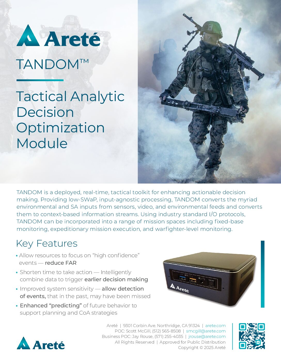 Areté’s core competencies have broad applicability across domains, sensing modalities, and use cases – commercial, defense, and other government customers. They take the form of software, hardware or integrated smart systems. The links below provide detailed descriptions of our technology portfolios and individual products, organized by Sector.
