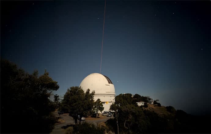 In early September 2025, Areté in collaboration with researchers from the University of California Santa Cruz (UCSC) and the UCO Lick Observatory, performed an on-sky demonstration of a Sodium Laser Guide Star System (SLGS) developed by Areté. Figures 1 and 2 are pictures of the 589nm SLGS beam exiting the observatory dome on the night of September 6/7.